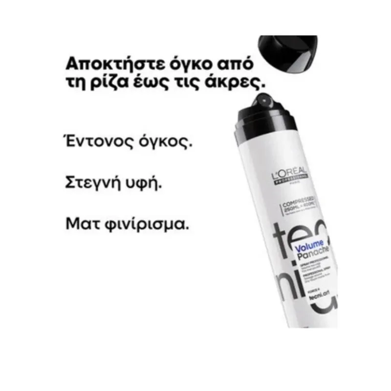 L΄Oreal Professionnel Tecni Art Volume Panache Spray-πούδρα για όγκο στα μαλλιά που δημιουργεί υφή. Δημιουργήστε ένα look με τέλειο όγκο και υφή για ένα ματ φινίρισμα, για να ενισχύσετε οποιοδήποτε hairstyle. Ιδανικό για messy και με υφή μαλλιά, λεπτές και σταθερές πλεξούδες και κοτσίδες, 60’s XXL looks. Χωρίς κατάλοιπα πούδρας.