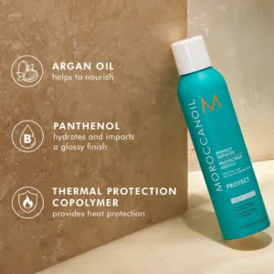 Το Moroccanoil Perfect Defense Spray Αναδόμησης/Θρέψης είναι ένα σπρέι χωρίς συγκράτηση που λειτουργεί με όλους τους τύπους μαλλιών και τα εργαλεία styling για προστασία από τη ζέστη έως 450° F/230° C. Για χρήση σε νωπά ή στεγνά μαλλιά.